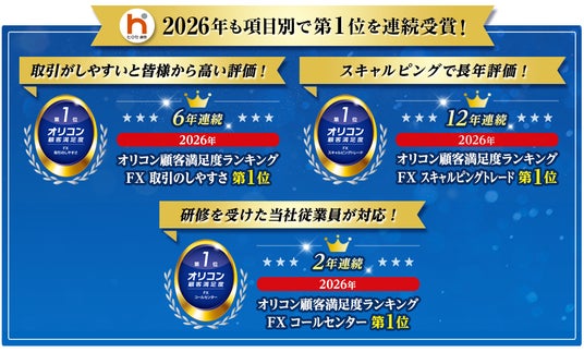 さらに、2026年 オリコン顧客満足度(R)ランキング 専門家評価 FX 総合 第1位を獲得しました。