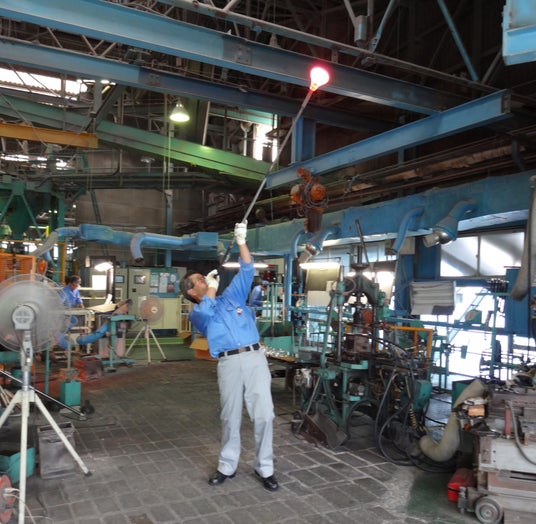 理化学製品の手吹き成形(ハンドブロー成形)風景
