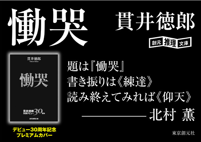 日本推理作家協会賞や山本周五郎賞を受賞するなど現代ミステリを代表する作家・貫井徳郎さんは、今年10月で作家生活30周年を迎えました。記念すべき節目の年に、デビュー版元である東京創元社では、累計60万部突破の大ヒットを記録しているデビュー作『慟哭』と、直木賞の候補に選ばれ映画化もされた傑作『愚行録』、この2作品を期間限定プレミアムカバーでお届けします。また、抽選で図書カードが当たる読者プレゼントキャンペーンを実施いたします。