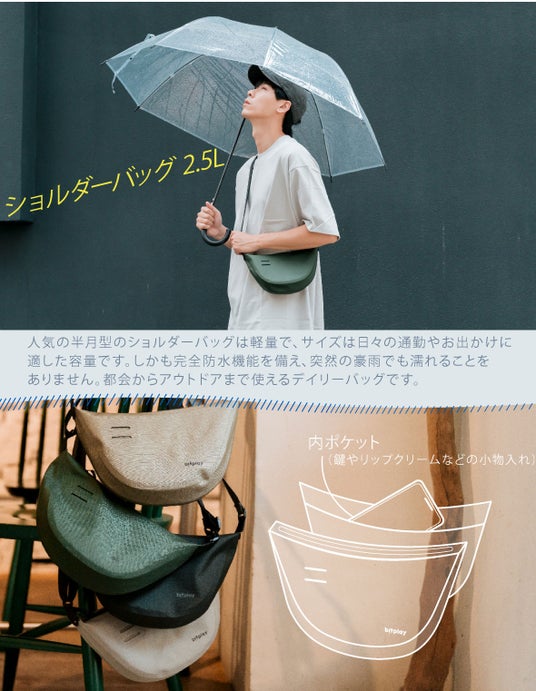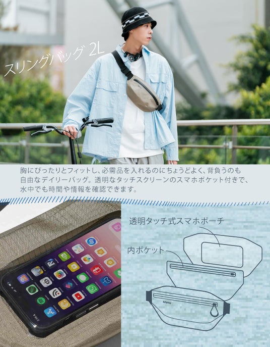 - 海やプールだけでなく、都会のストリートでも気軽に使えるようにミニマルでシンプルなデザインを採用