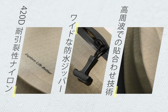 材質:420Dナイロン、TPU、ポリエステル、ハイパロン、防水ジッパー、POM
