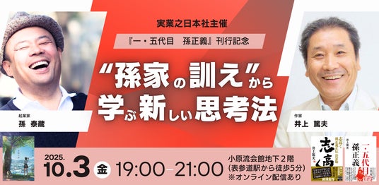 株式会社実業之日本社(本社:東京都港区、代表取締役社長:岩野裕一)は、2025年8月28日発売の新刊『一・五代目 孫正義』(井上篤夫 著)の刊行を記念し、特別トークイベントを開催します。