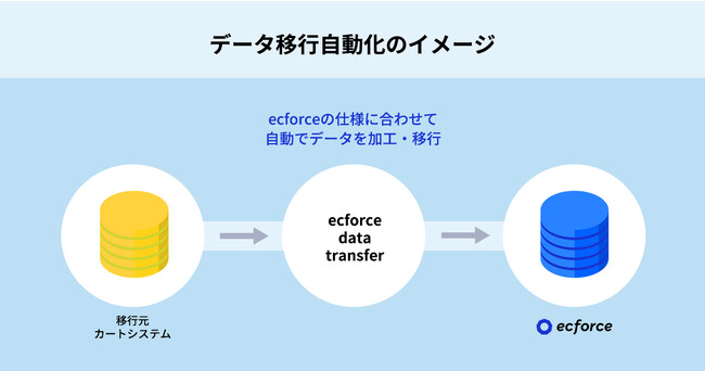 また、EC/D2CメーカーがECシステムの移行によって発生する作業やコストの重さやリスクを懸念し、売上向上や業務効率化につながるECシステムへの移行を判断できないケースも多くあります。ECシステムは顧客情報や商品情報など膨大な量のデータを保有しており、中には個人情報も多く含まれるため、システムを切り替える際は正確かつ安全に情報を移行するための経験やノウハウが必要になります。今回の「ecforce data transfer」開発はこれらの課題を解決するために開発をしました。