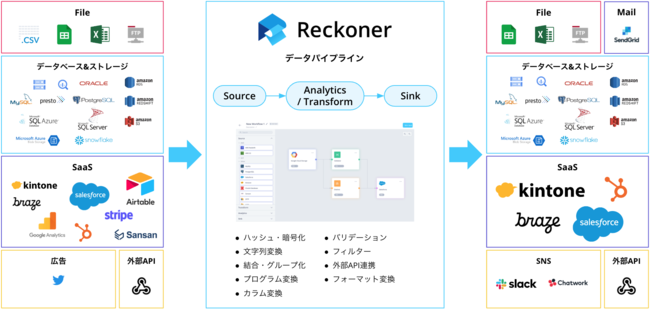 Reckoner はノーコード型 ETL、データパイプラインサービスです。