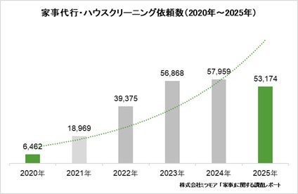 家事代行・ハウスクリーニングの年間依頼数は5年で8.2倍増加 年末ピーク後の今がねらい目!12月の半額で依頼できるケースも ~1・2月に試したい“お得”な依頼テクニックについて解説~