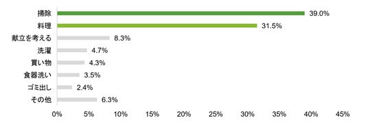 ・主婦が負担だと感じる家事 TOPは「掃除」、次いで「料理」「献立を考える」という結果に