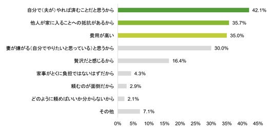 また、全体の13.4%が「妻に休んでもらうために、家事代行・ハウスクリーニングを利用した経験がある」と回答。一部の家庭の中では代行サービスの活用が進んでいる一方、「自分で(夫が)やれば済むことだと思う」といった回答も多く、妻の悩みとのギャップが見られました。