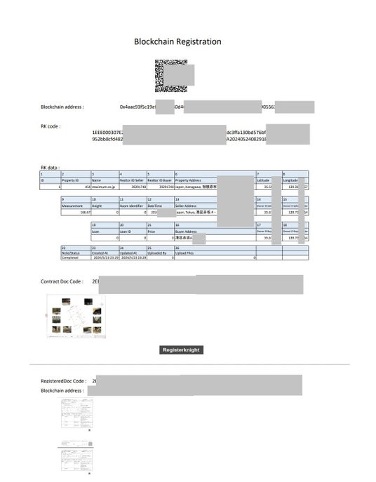 不動産ブロックチェーンに登記された不動産情報(レジスターナイト)