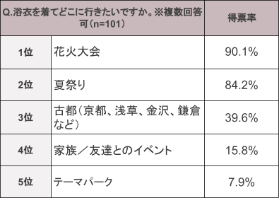 浴衣を着て行きたい場所1位は「花火大会」!3位には「古都」がランクイン。