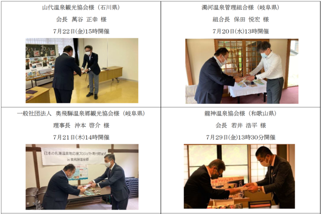 贈呈式では、「コロナ禍も3年目の半ばを過ぎ、温泉地域が大きく疲弊する中、今回のプロジェクトで差し伸べていただいたご支援は、温泉地を忘れないで支えてくださる方がいるという本当に大きな支えになっております。」などのお声をいただいており、寄付金は、各地で環境整備や施設の修繕費など、各温泉地の活性化に使われます。