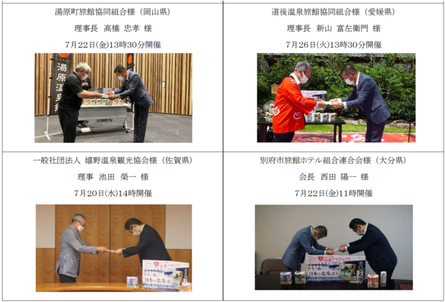 当社では、新型コロナウイルス感染症に起因する観光客の減少によって、温泉地や温泉地周辺の観光地がダメージを受ける中、「日本の名湯」をご公認いただいている温泉地の活性化や支援の一助になればと考え、「日本の名湯」の売上げの一部を寄付するプロジェクトを行っております。