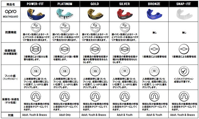 OPRO(オープロ)のマウスガードは、アマチュア初心者からプロアスリートまで、あらゆるレベルに最適なマウスガードを用意しています。最高機種Power-Fitを頂点にあらゆるレベル、幅広いユーザーに最適な商品を提供します。全ての商品は人体への有害が疑われるラテックス、フタレート、ビスフェノールAを使用していません。