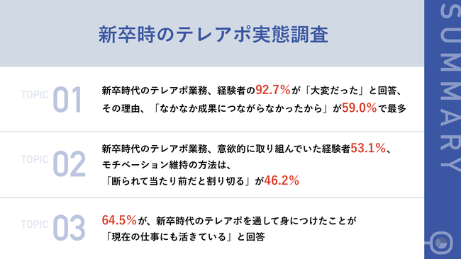 ~モチベーション維持の秘訣も明らかに、新卒時代にテレアポを行った社会人316名に調査~
