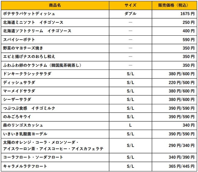 新年度が始まるこの季節に様々な場面でびっくりドンキーを楽しんでほしいという想いを込めて、サラダ、ドリンクの2サイズ化やポテサラパケットディッシュのダブルサイズの登場に加え、デザートやアラカルトメニューにおいても新たな商品が登場します。