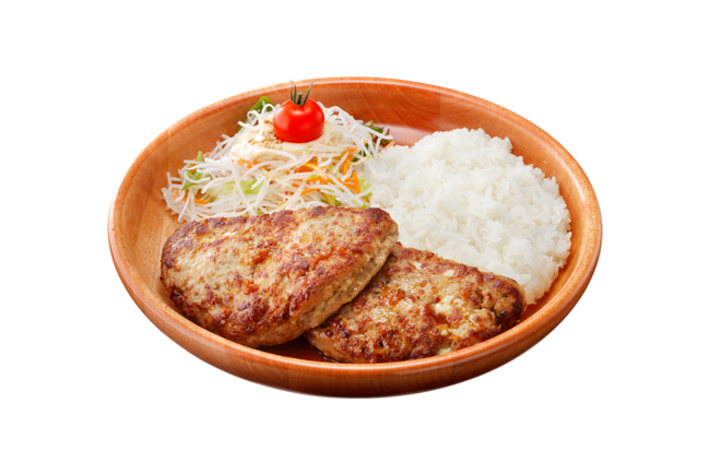 ※ハンバーグにお好みでトッピングできます。(エッグ、おろしそ:¥110(税込)/チーズ(2本)、パイン:¥180(税込))