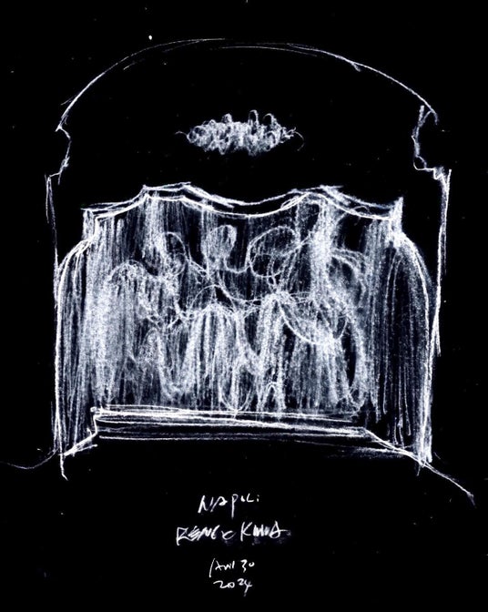 Giuseppe Verdi(ジュゼッペ・ヴェルディ)のオペラ作品は、隈研吾氏によってその物語性と視覚的要素が徹底的に研究されました。ジェノヴァを舞台とした剣戟と陰謀の物語が、ナポリのオペラの殿堂で再現され、両都市間の海洋的つながりが強調されています。これらの都市は、共に文化的な交差点であり、隈研吾氏自身の個人的な歴史とも深く結びついています。ナポリの風景は火山の存在によって特徴づけられ、火を象徴とする地と水の自然との深い結びつきを演出しています。