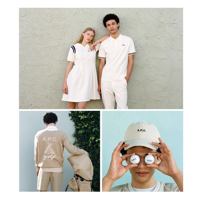 落ち着いたデザインの中にストレッチ性、通気性といったゴルファーがウェアに求める機能性を施したアイテムが揃い、A.P.C.(アーペーセー)らしいミニマルなデザインは、ゴルフのみならず日常の着こなしとしても楽しめるのが特徴です。