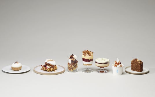 左から シーズナルタルト メープルキャラメル/ワッフルプレート ホリデージャム&クリーム/ワッフルパフェ ホリデージャム/シーズナルパフェ ナポレオンパイ/プリン・ア・ラ・モード シーズナル チェリー&ピスタチオ/ミルクソフト ホリデージャム/ホリデー ジャンドゥーヤケーキ