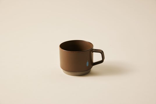 ブルーボトルコーヒー カフェでもドリンクやフードのご提供に使用しているKINTO(キントー)とコラボレートして製作したマグカップを、今年のホリデーカラーのひとつである深いキャラメルカラーでご用意いたしました。KINTOのFARO(ファーロ)シリーズのカップをベースに、天草半島で採掘された天草陶石に砂や岩を砕いたものを混ぜた砂岩土を生地に使用。あたたかみやクラフト感のあるマグカップで、取手近くにあるさりげないボトルロゴがポイントです。