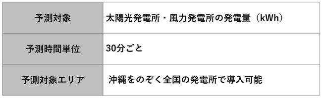 本システムは太陽光発電所・風力発電所において、過去の発電量実績データや気象予測データを機械学習させて開発した予測モデルを用い、翌日の発電量予測を行うものです。