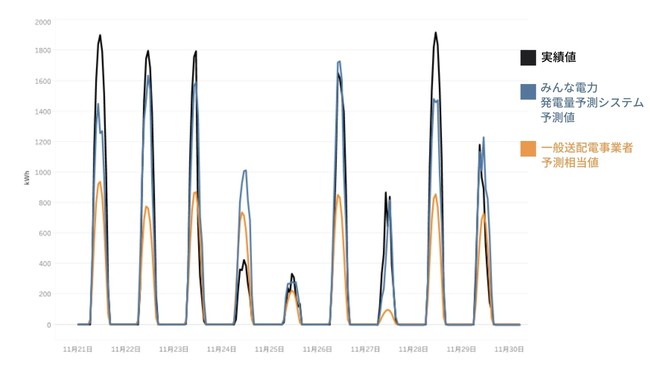 <みんな電力 発電量予測システム 太陽光発電予測データ例>※5