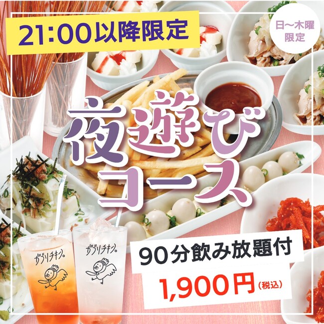日曜日から木曜日の21時以降限定で、お得に気軽に楽しめるコースです。