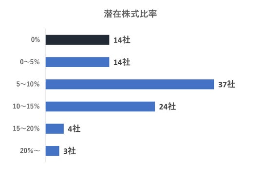 最も高い潜在株式比率は25.7%、平均値は8.02%となりました。