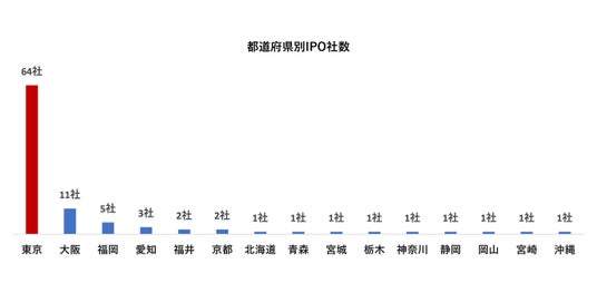 調査対象:期間内に国内の取引所(東京証券取引所、名古屋証券取引所、福岡証券取引所、札幌証券取引所)に新規上場した企業