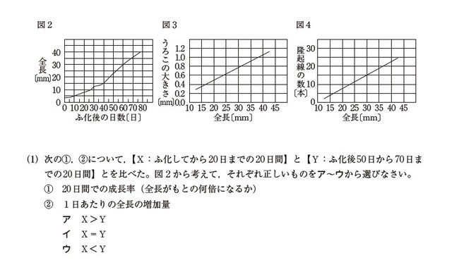 実際の出題例2.女子学院中学校 理科の入試問題より一部抜粋