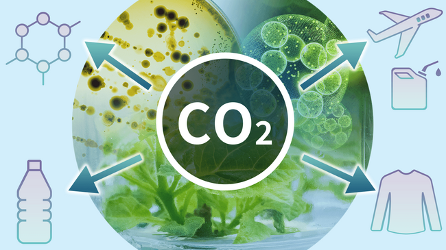 本事業は、CO2とH2から様々な化成品や飼料原料を生産するための技術開発に取り組むものです。CO2を直接原料として物質生産するバイオプロセスは、世界で商用化事例のない新たなものづくり技術であり、カーボンニュートラル社会の実現に向けた選択肢の一つとして期待されています。