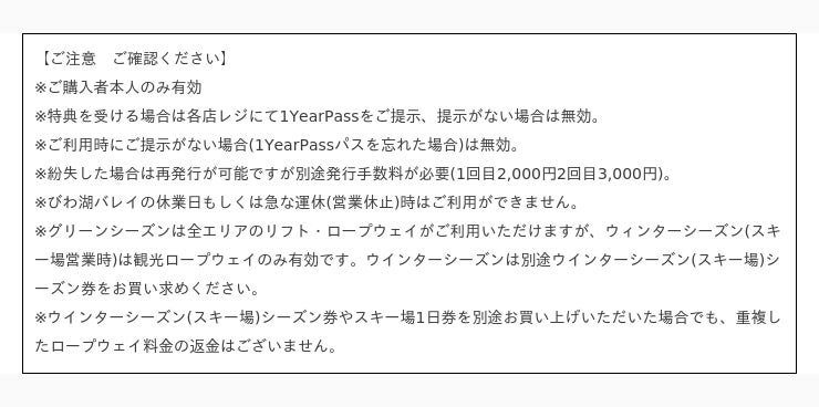 ※びわ湖バレイロープウェイ 1Year Pass買替時にロープウェイ券の購入レシートが必要です。