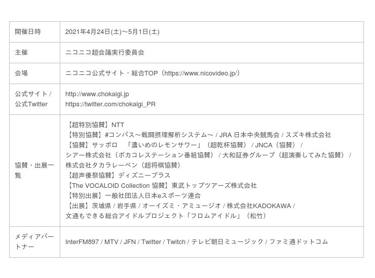 ニコニコネット超会議2021 Supported by NTT – 開催概要