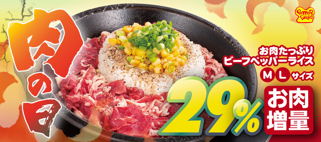 株式会社ホットパレット(本社:東京都江東区、代表取締役社長:松本純男)が運営するペッパーランチは、肉の日にちなみ7月29日(土)に「お肉たっぷりビーフペッパーライス」のお肉を通常より29%増量して販売いたします。