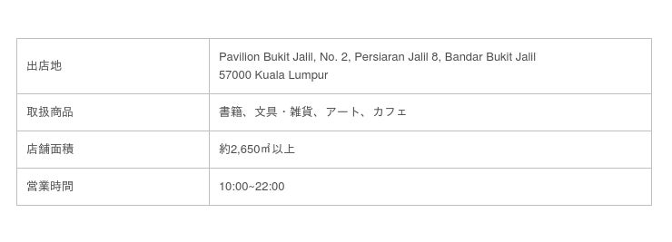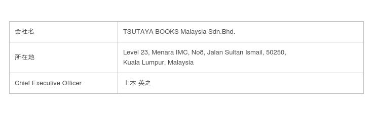 【TSUTAYA BOOKS Malaysia Sdn. Bhd. 会社概要】