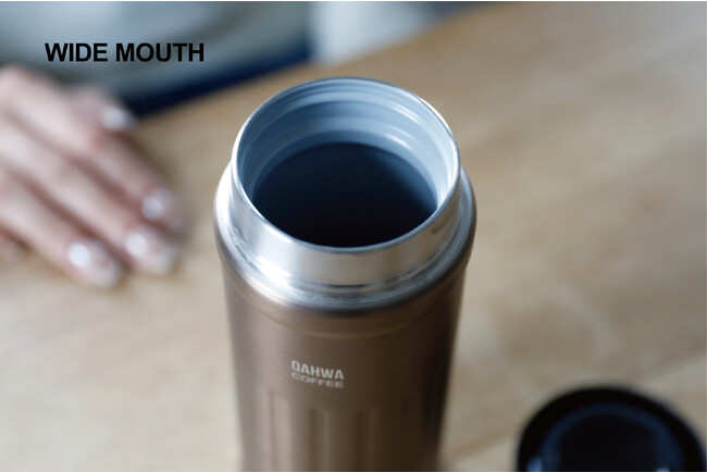 ボトルの内面はTeflon™加工が施されているので、コーヒーの匂いや汚れの付着を軽減します。