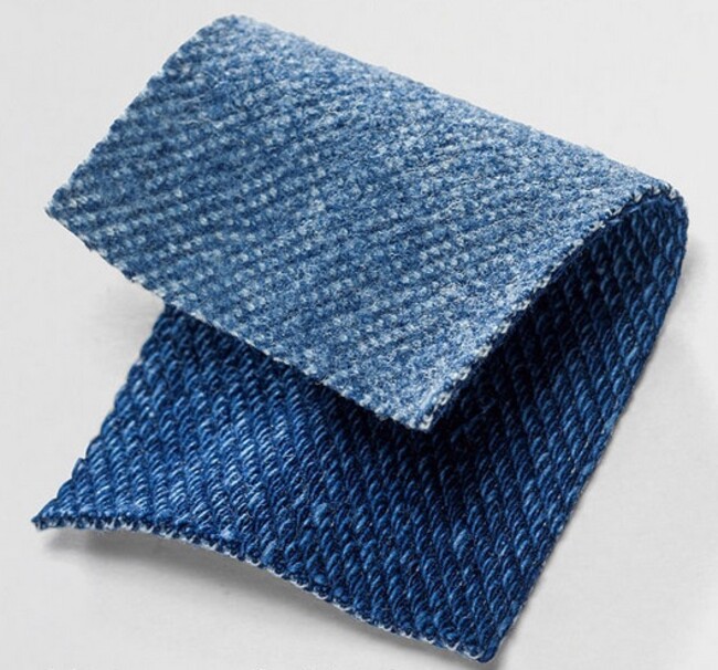 裏側をほんのり起毛させたひんやり感のないデニム風のニット素材