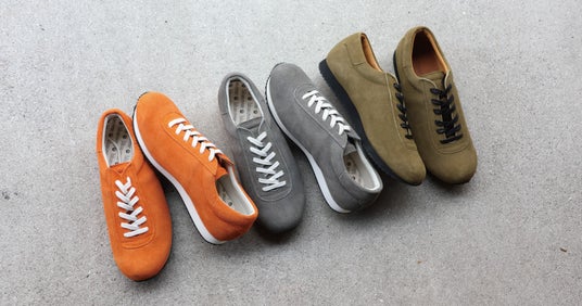 「マイキー」はブランド当初から販売されている定番モデル。アッパーデザインをパーツのつなぎ目をなくした一枚革のシンプルなデザインが特徴。しかし所々にスニーカーとしてのディティールを踏襲しており、ありそうでなかったデザインが今でも売れ続けている理由となっています。今回数量限定で秋冬を着想したカラーのマイキーを製作しました。大量生産ではなく、工場の職人と必要数だけ生産できるのもブルーオーバーの特徴です。