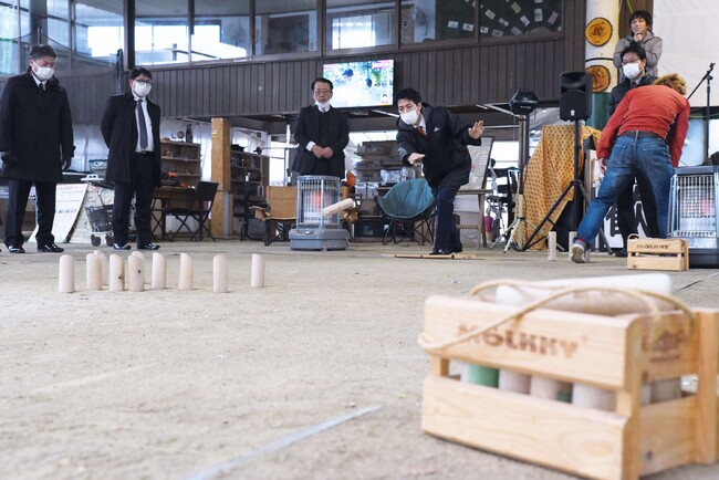 この日、参加した2市2町(新潟県十日町市はリモート参加)は、「令和4年度事業計画および予算案」や「今後の交流事業のあり方」の議題などについて、意見交換を行った。その後、兵庫県川西市にフィンランド発祥のスポーツであるモルックの愛好家の間で「聖地」と言われている満願寺があることから、「モルック体験交流会」がモルックドーム(川西市石道字下ノ垣内216-1(天然温泉石道内))にて行われた。