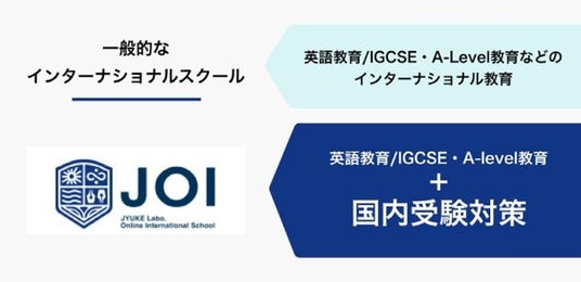 JOI(JyukeLabo-Online-Internationalschool)は、英語4技能の総合的な学びにより真の英語力をオンラインで養成する「国際英語コース」をはじめ、海外大学進学を視野に入れた「インターナショナルスクールコース」、英検対策、国内の高校・大学受験対策を並行して学習する「ハイブリッドコース」など、多様なニーズに対応したプログラムを提供します。それぞれのプログラムは、英語学習だけでなく、グローバルに活躍するために必要な「問題解決力」「クリティカルシンキング」「自立的研究」「コラボレーション」「議論」「プレゼンテーション力」を育成することに重点を置いています。