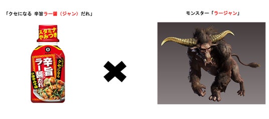 2024年8月5日に発売した「クセになる 辛旨ラー醤(ジャン)だれ」とゲームの人気モンスター「ラージャン」の名前が一致したことから誕生したコラボ企画です。1本でクセになるやみつき肉料理が完成する「クセになるたれ」シリーズを使って、ボリューム感たっぷりなキッコーマン流“モンハン飯”をぜひお楽しみください。
