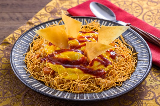 黄金の体毛に包まれる「激昂ラージャン」を表現!「キッコーマン クセになる 辛旨ラー醤だれ」で炒めた焼飯でつくったオムライス。ケチャップと合わせた旨辛いたれを上からかけて召し上がれ!