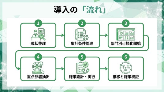 - 部門別可視化の運用開始(例:ヒートマップ等)