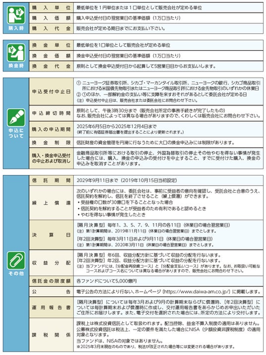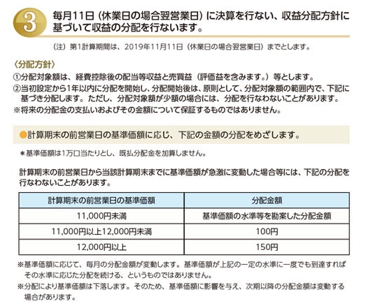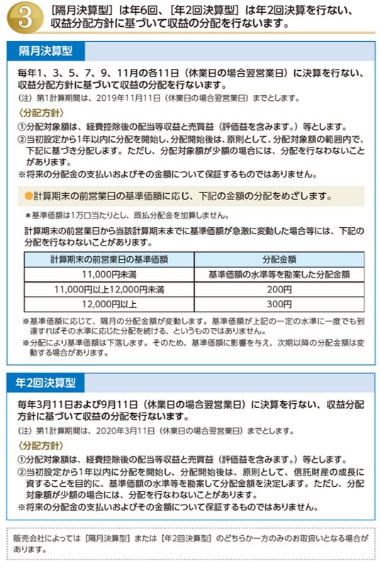 - 分配金は収益分配方針に基づいて委託会社が決定します。あらかじめ一定の額の分配をお約束するものではありません。分配金が支払われない場合もあります。