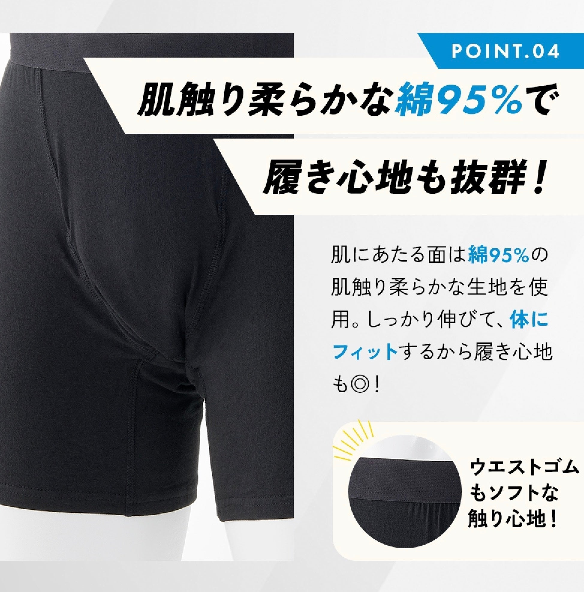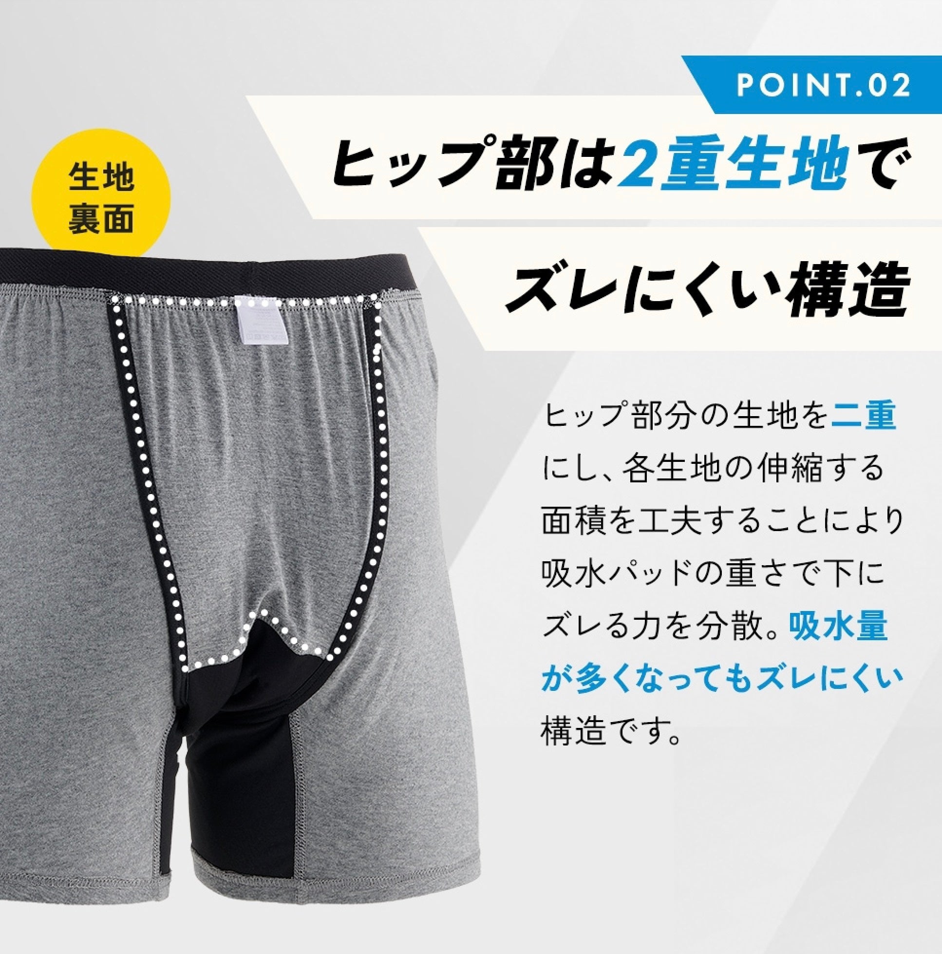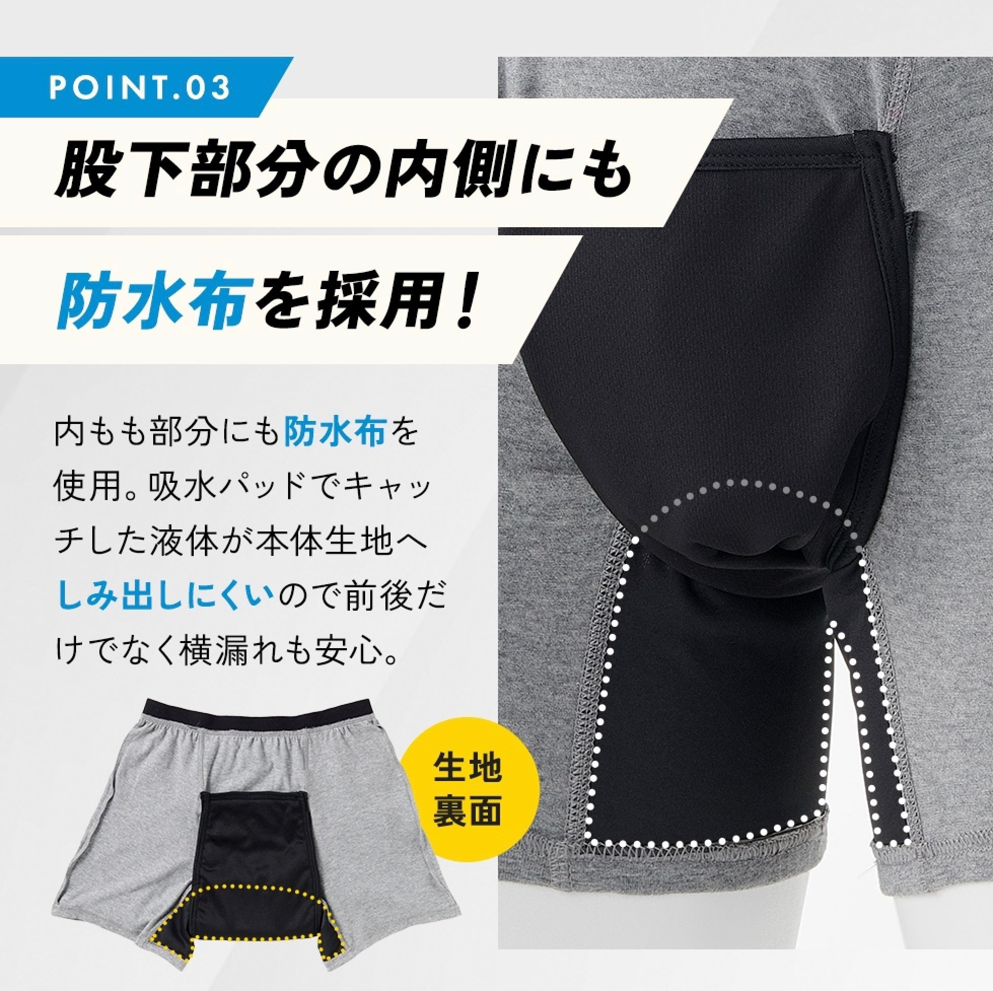見た目が普通の下着と変わらない、前後横モレ対応のボクサーパンツ。