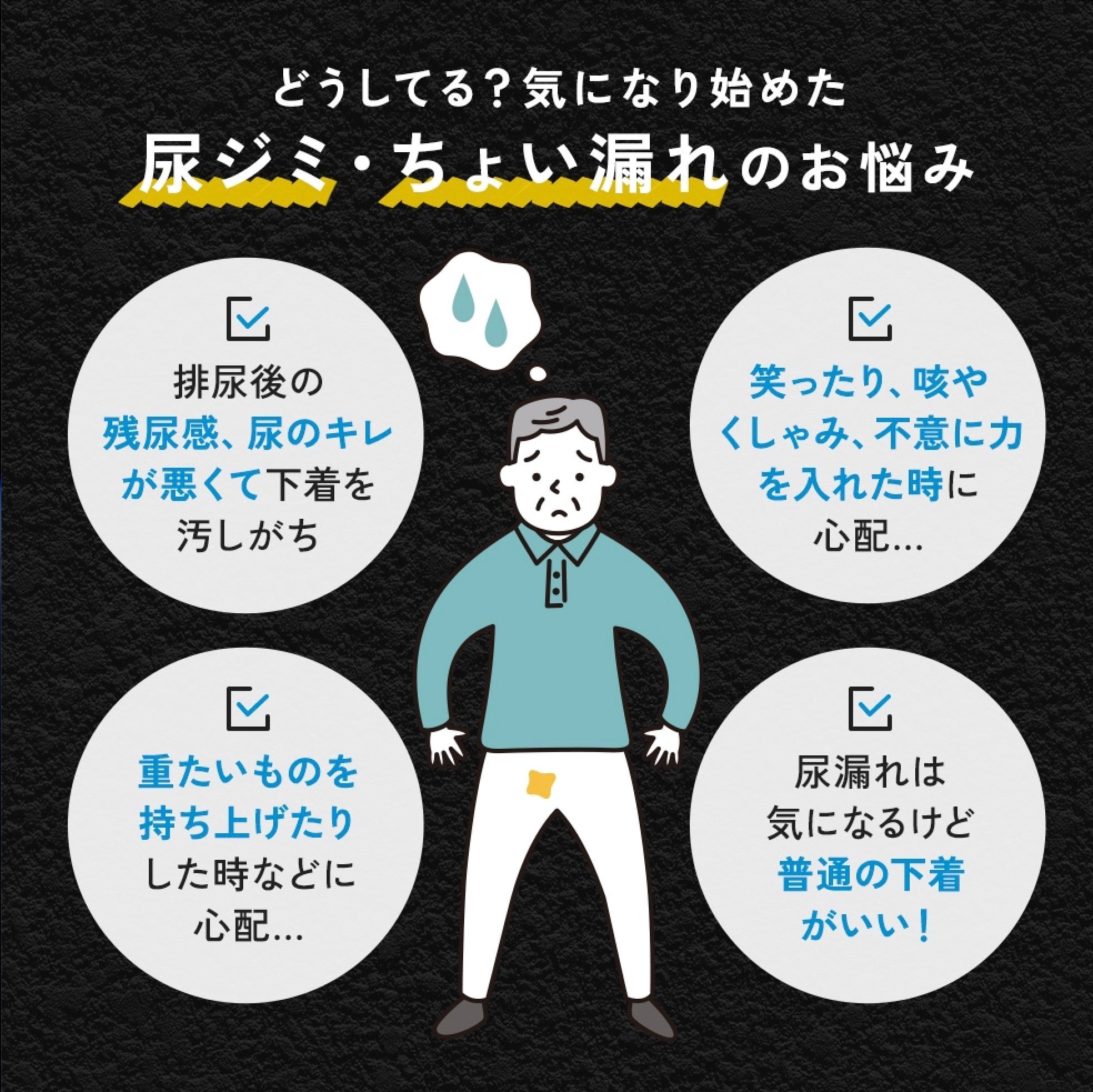不意に力を入れた時、重たいものを持ち上げたりした時に心配な方や、排尿後の尿切れが悪い方におすすめです。