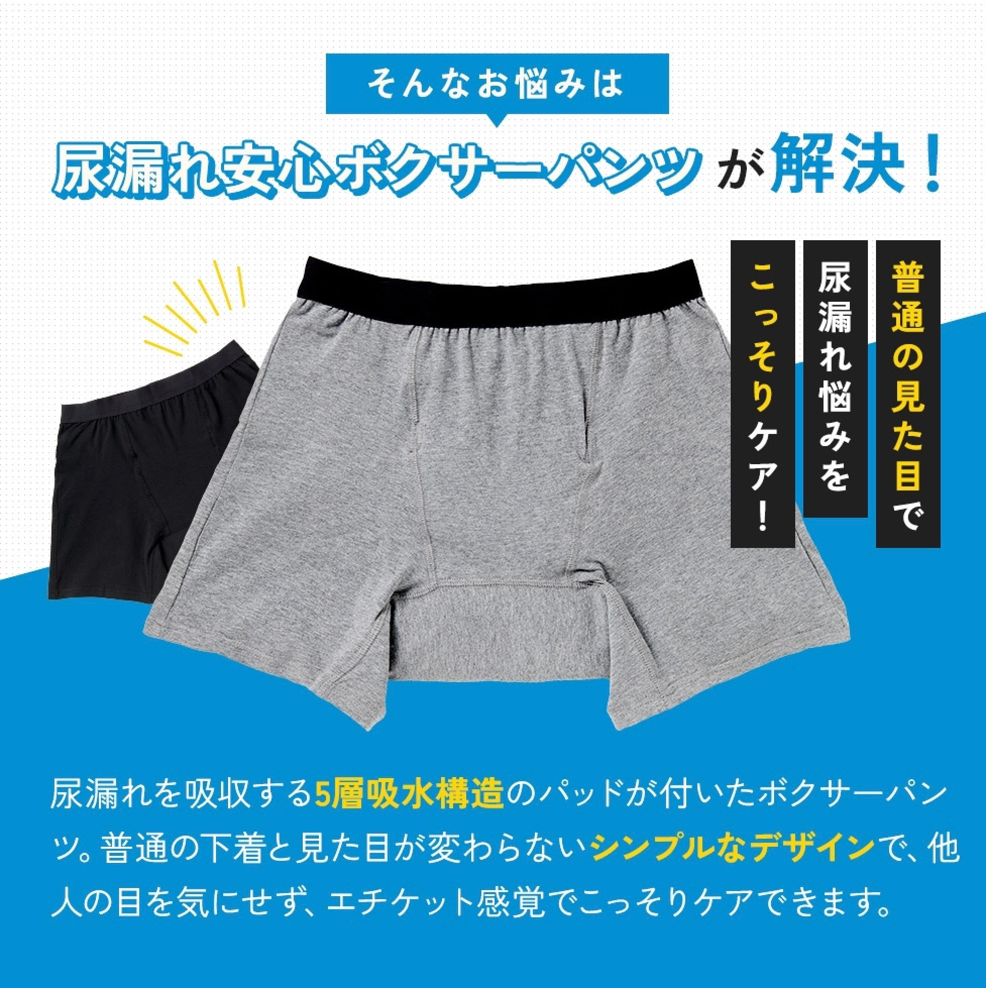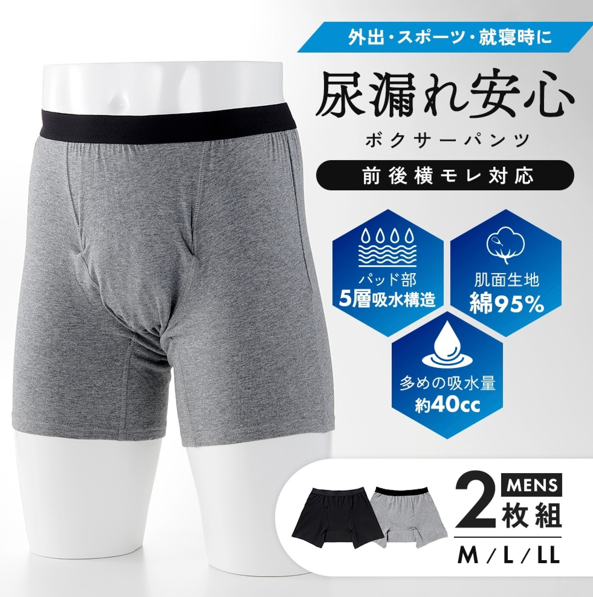 尿漏れ安心ボクサーパンツ前後横モレ対応 2枚組
