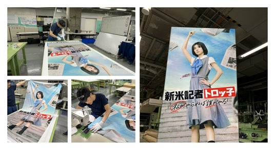 東日印刷株式会社(本社:東京都江東区、社長:西川光昭、以下 TONICHI、https://tonichi-printing.co.jp/)が製造・販売する100%ペットボトル再生布を使ったファブリック・サイネージ「LUFAS(R)(ルーファス)https://try-oa.com/services/lufas/」が、8月9日(金)公開の社会派青春エンターテインメント映画「新米記者トロッ子 私がやらねば誰がやる!」(配給:東映ビデオ、SPOTTED PRODUCTIONS、https://torokko-movie.jp/)で採用されました。7月11日(木)に、グランドシネマサンシャイン 池袋(豊島区東池袋)で行われた完成披露上映会のウェルカムボードとしてお披露目され、櫻坂46の藤吉夏鈴さん初主演映画に花を添えました。
