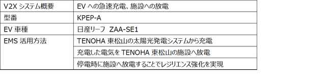 東急不動産株式会社(本社:東京都渋谷区、代表取締役:星野 浩明、以下「東急不動産」)、ならびに株式会社リエネ(本社:東京都渋谷区、代表取締役社長:西田 恵介、以下「リエネ」)、エクシオグループ株式会社(本社:東京都渋谷区、代表取締役社長:舩橋 哲也、以下「エクシオ」)、オムロン ソーシアルソリューションズ株式会社(本社:東京都港区、代表取締役社長:四方 克弘、以下「オムロンSS」)、東京センチュリー株式会社(本社:東京都千代田区、代表取締役社長:馬場 高一、以下「東京センチュリー」)、株式会社ユー・シー・エル(本社:東京都渋谷区、代表取締役:陳 海波、以下「UCL」)の6社は、埼玉県東松山市のTENOHA東松山にて「太陽光発電」「電気自動車」「V2X機器」を連動させたエネルギーマネジメントシステム(EMS)構築の実証実験(以下、「本事業」)を開始いたします。