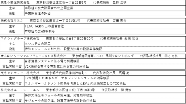 今後もTENOHA東松山において各社の技術と知見を結集し、「電気代・電力量推移の分析」「エネルギーマネジメントシステムの効果検証」「事業採算性の評価」「事業発展に向けた最適な利活用方法の検討」「停電時もBCP対応が可能な災害に強いシステム構築」など、様々な実証実験を継続して行ってまいります。