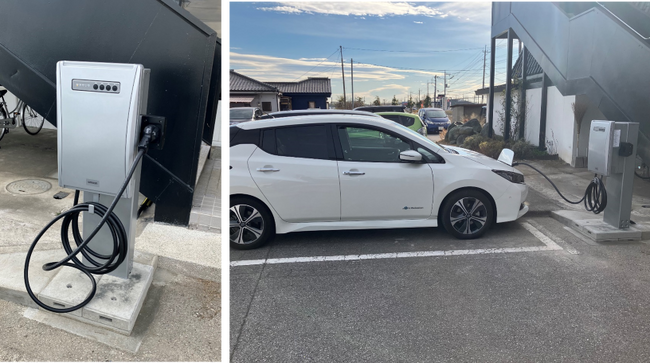 今回新たに、オムロン製のV2X(※2)システム「マルチV2Xシステム(KPEP-A)」とEV(※3)(東京センチュリー連結子会社の日本カーソリューションズ株式会社がリース提供するニッサン・リーフ)を本施設に設置いたしました。これらと太陽光発電を連動して充放電を行い、ピークカットによる電気料金の削減効果等を検証するとともに、停電時等においてEVからエネルギーを供給するなどの効率的なEMS構築を目指します。